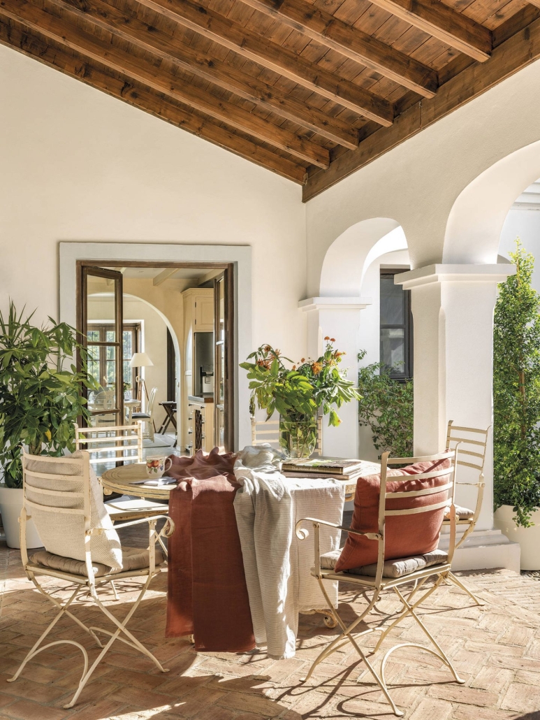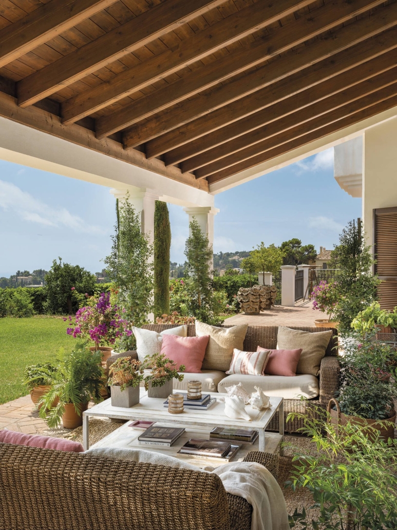 Antes de cruzar el umbral de la casa, nos detenemos en un acogedor rincón al aire libre, ideal para disfrutar de momentos de relax en compañía de un buen libro o de amigos cercanos. Este espacio, con su ambiente informal y su encanto rústico, invita a desconectar del ajetreo diario y a sumergirse en la paz que solo la naturaleza puede ofrecer. Es el preludio perfecto para la experiencia sensorial que aguarda en el interior de Villa Romana.