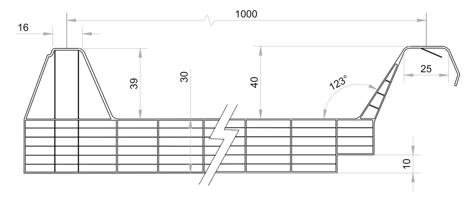 Es un panel de policarbonato alveolar creado para cubrir las necesidades de iluminación en cubierta junto con nuestros paneles sándwich sin tapajunta, de 30 mm de espesor y formado por 7 paredes de células rectangulares (cámaras de aire), dotando al producto de un buen aislamiento térmico.