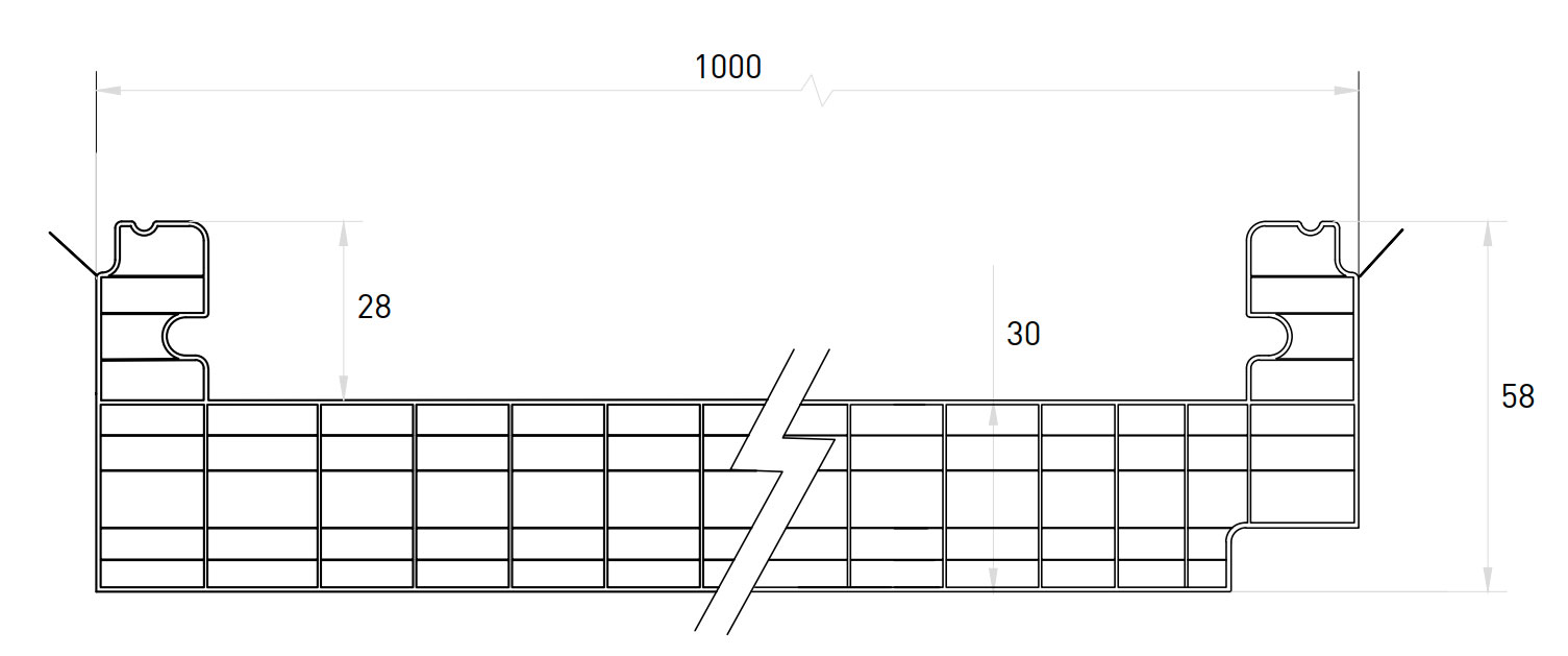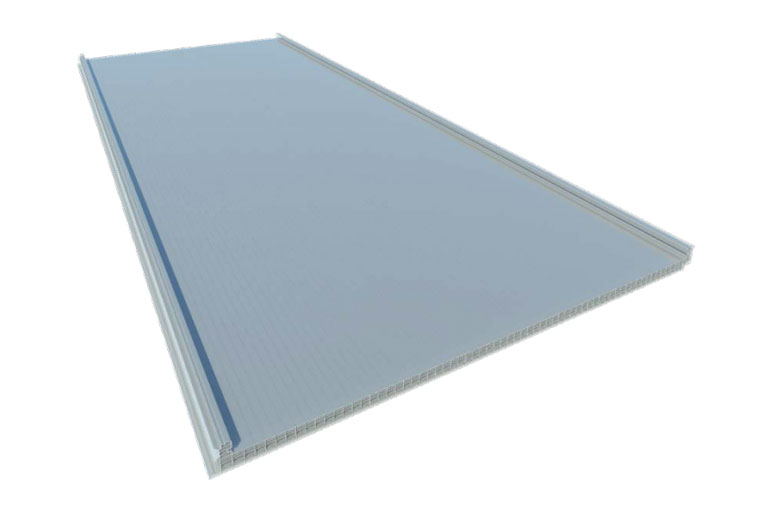 Es un panel de policarbonato alveolar creado para cubrir las necesidades de iluminación en cubierta junto con nuestros paneles sándwich con tapajunta, de 30 mm de espesor y formado por 6 paredes de células rectangulares (cámaras de aire), dotando al producto de un buen aislamiento térmico.