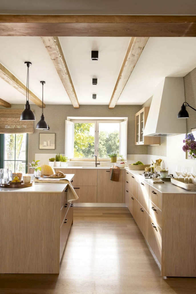 Sin embargo, no todo fue una vuelta al pasado. Las interioristas también introdujeron algunos elementos modernos de manera sutil y respetuosa. «El objetivo era mantener la funcionalidad de una casa moderna sin que esto rompiera con la estética de la masía», explica Laia. Se integraron electrodomésticos de última tecnología en la cocina, pero siempre buscando que quedaran lo más ocultos posible. Del mismo modo, se instalaron sistemas de calefacción y climatización que garantizan el confort de los propietarios sin afectar el diseño tradicional.