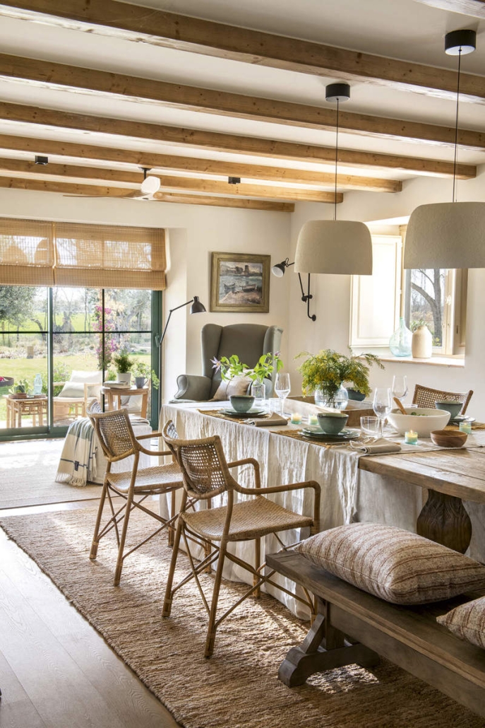 En cuanto al suelo, se optó por un cambio radical. El porcelánico moderno fue reemplazado por pavimento de barro cocido, una opción que no solo aporta calidez visual, sino que también es mucho más acorde con el estilo rústico. «El suelo de barro cocido tiene la ventaja de envejecer muy bien y con el tiempo adquiere un carácter único», explican las interioristas. Este material, además, se siente mucho más cálido al tacto, invitando a caminar descalzo y a disfrutar de la sensación de estar conectado con la tierra.